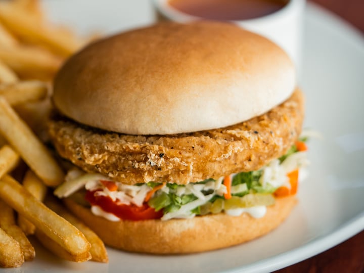 Burger le Chicken : Pain burger façon viennois filet de poulet cheddar coulant sauce blanche et ses légumes frais 10.00 € 0.00 €